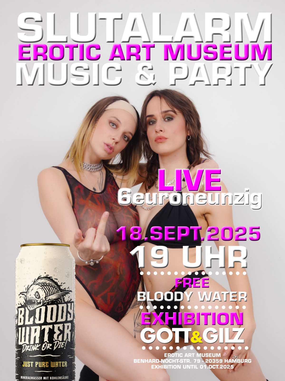 As side part of the renowned Reeperbahn Festival, the Erotic Art Museum is proud to present a special showcase featuring the rap duo 6euroneunzig alongside the visionary art collective GOTT&GILZ. Together, they will offer an exclusive preview of their forthcoming collaborative publication F.O.T.Z.E.N., scheduled for release in December 2025.